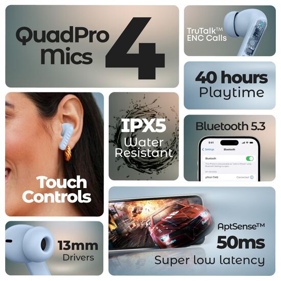 | Special Feature | Surround Sound, Sweatproof, Noise Isolation, Microphone Included, Touch Control |