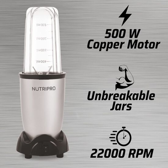 NutriPro Juicer Mixer Grinder - Smoothie Maker - 500 Watts (2 Jar, Silver) - 2 Year Warranty