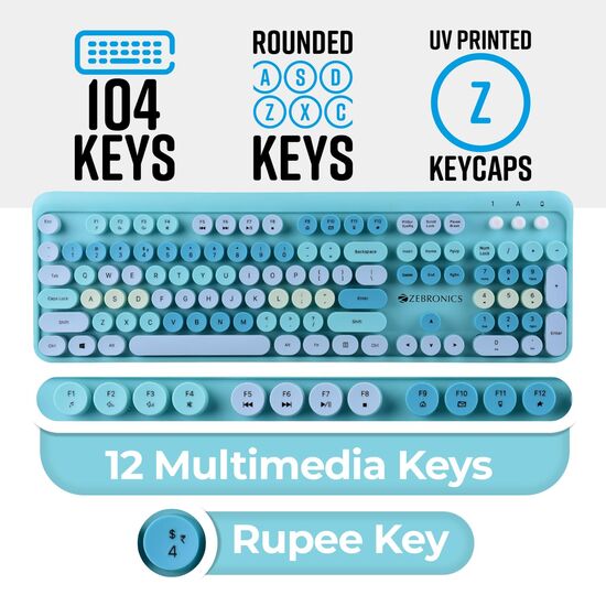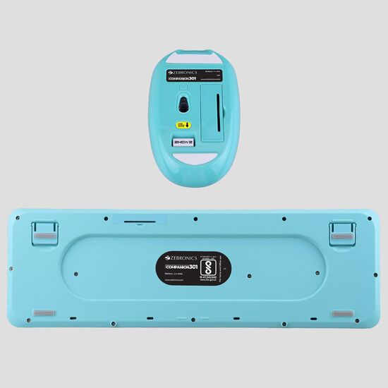 ZEBRONICS Companion 301 2.4GHz wireless keyboard & mouse combo with UV Printed, Retro style keys, 104 + 12 Integrated Multimedia Keys, 1600 DPI, High Precision (Aqua Green)