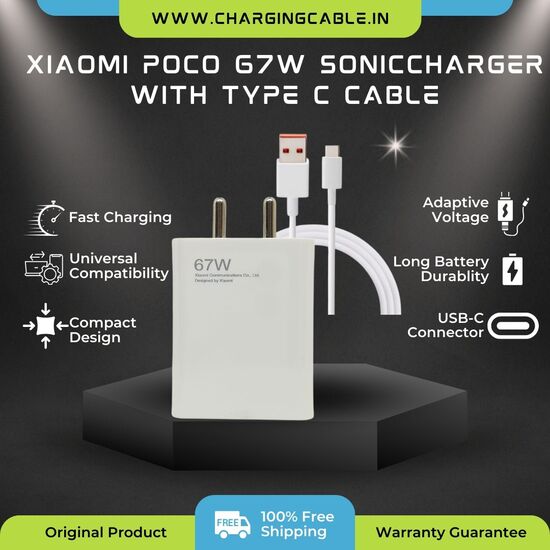 Product & SpecificationThe New POCO 67W Superfast SonicCharge 3.0 Charger with Type-C cable delivers ultra-fast charging for all your devices. ? & Sleek and compact, it’s perfect for travel and daily use. ?? Compatible with a wide range of gadgets, this charger ensures efficient and reliable power. ?? Equipped with advanced safety features, it protects against overcharging and overheating. ??? Enjoy seamless connectivity and uninterrupted use with the POCO 67W Superfast SonicCharge 3.0 Charger and Type-C cable! ???? Stay powered up and ready for anything! ??. Technical Specifications are below: